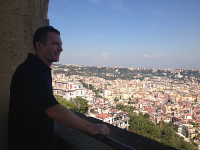 direction and multiple times came to dead-ends. After a very sweaty and adventurous journey, we finally made it to the top to find spectacular views of Mt. Vesuvius, downtown Naples and the ocean.